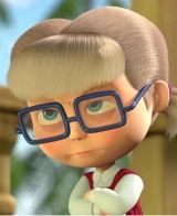Сестричка Маши. Носит очки и ведет себя, как взрослая. Без очков очень похожа на Машу.